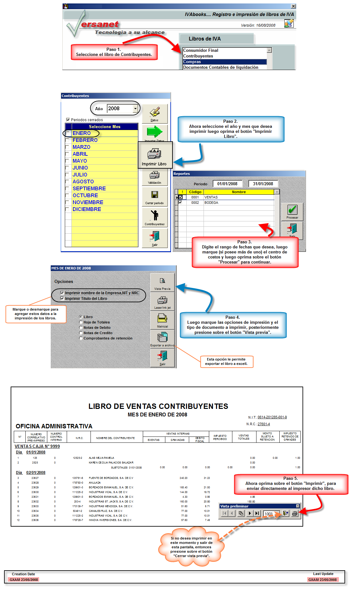 Si su empresa administra varios centros de costos deberá elegir si lo desea de forma individual o de forma global especificando previamente el lapso de tiempo en el cual desea dicho libro. Para imprimir dicho libro dispone de: