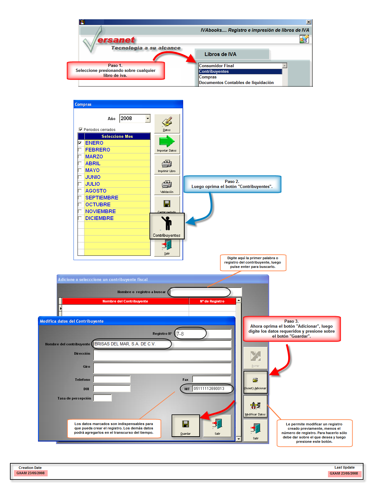 Ahora que ya sabe quienes son estas personas, es necesario que pueda ingresar cada uno de estos datos al sistema, para ello el sistema de Ivabooks le ofrece la opción de Contribuyentes que es un formulario de mantenimiento, este le permite adicionar, modificar o borrar datos de los antes mencionados.- Esto le facilita hacer cambios en el registro de contribuyentes fiscales sin necesidad de hacerlo desde el Xpos.