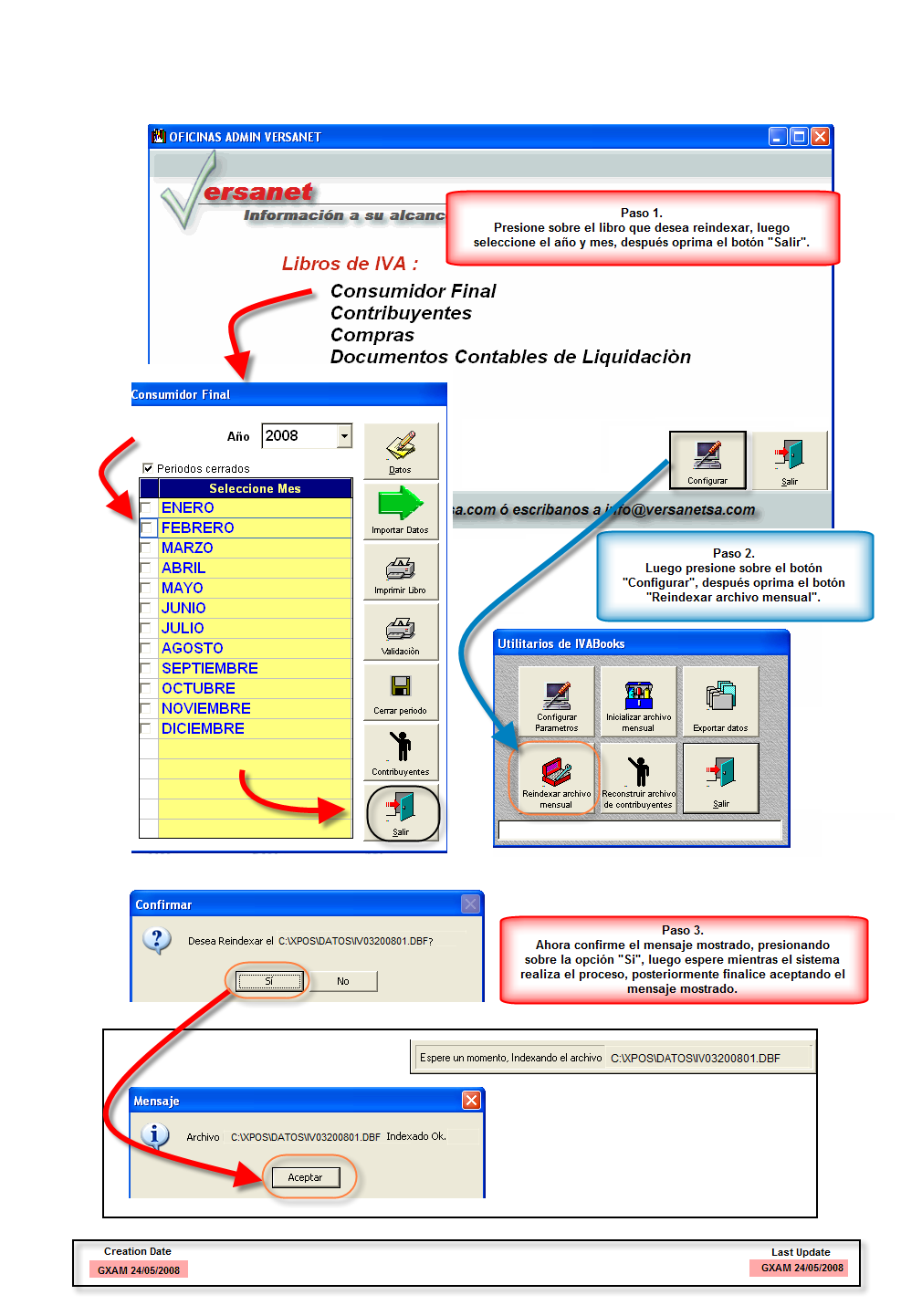 Esa herramienta permite ordenar las tablas de los archivos de libros legales, por algún error en archivos generados. Si el proceso a sido satisfactorio, el sistema le enviará un mensaje de confirmación, en seguida debe confirmarlo.