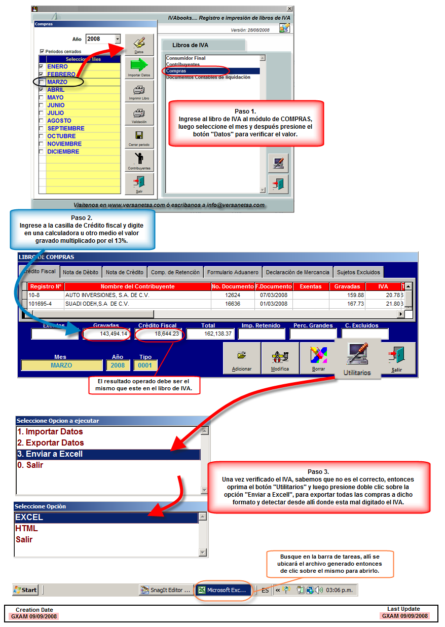 Lo primero que se realiza es verificar el total de los valores gravados junto con el iva. Esto lo debe realizar manualmente si los valores consultados en el IVABOOKS difieren de los obtenidos calculados proceda a enviar el dato a archivo por medio de la opción UTILITARIOS.