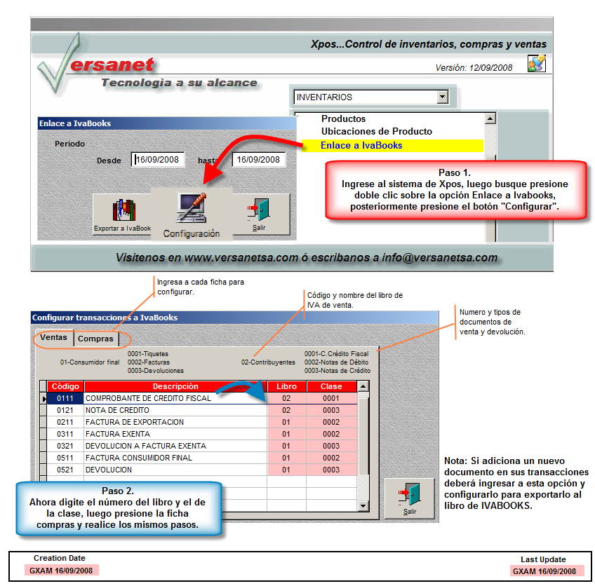 Tal como se explica en la siguiente pantalla, deberá ingresar al sistema de Xpos y buscar la opción Enlace a IvaBooks.