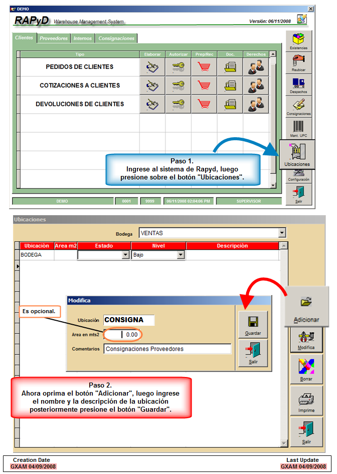 4. Descripción, puede digitar una breve descripción de la ubicación, por ejemplo: Si ha creado una ubicación con el nombre CONSIGNA entonces la descripción podría ser