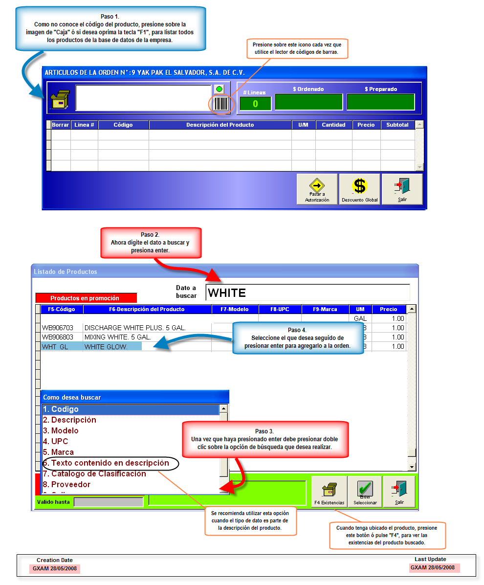 Sin embargo si usted no cuenta con tal dispositivo puede realizar búsquedas manualmente es decir para ello se tardará un poco más pero le servirá al personal para conocer la base de datos de los productos aunque no se pretende que siempre este realizando este tipo de proceso.