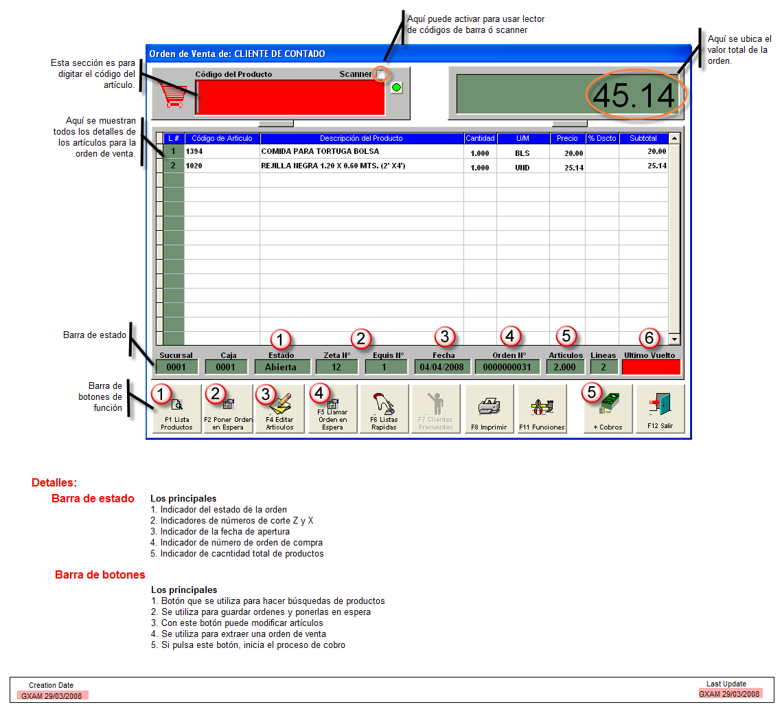 Al igual que todo sistema de informática los sistemas de Versanet, también están compuestos por los siguientes elementos. Conozca las partes principales de la ventana de punto de ventas: