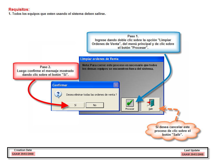 Aquí puede realizar el proceso de borrar las ordenes de venta que han quedado de un día anterior ó cuando sean muchas, generadas durante el día.