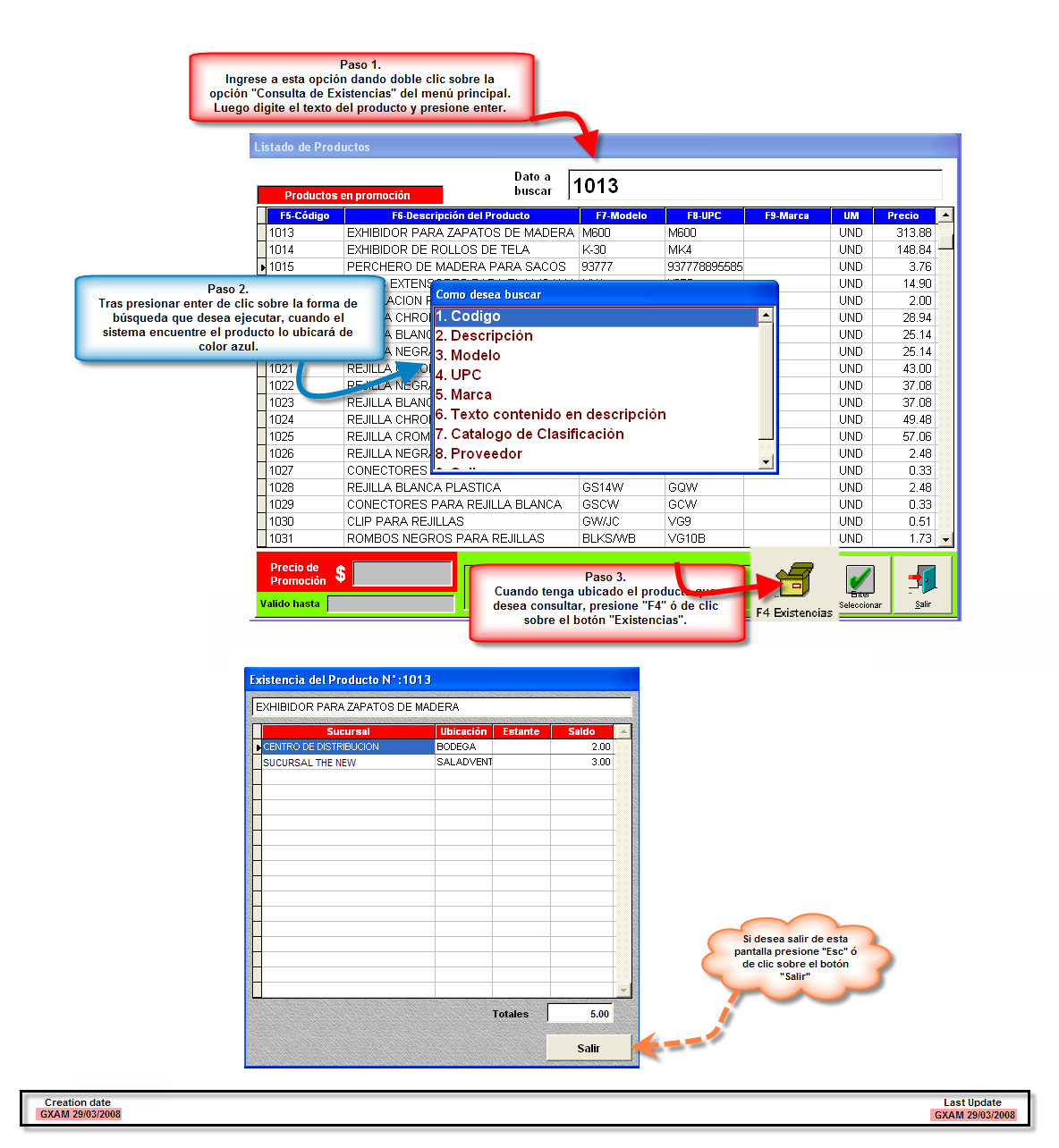 En esta opción puede controlar las existencias de inventario que posee cada sucursal y el total entre ambas.