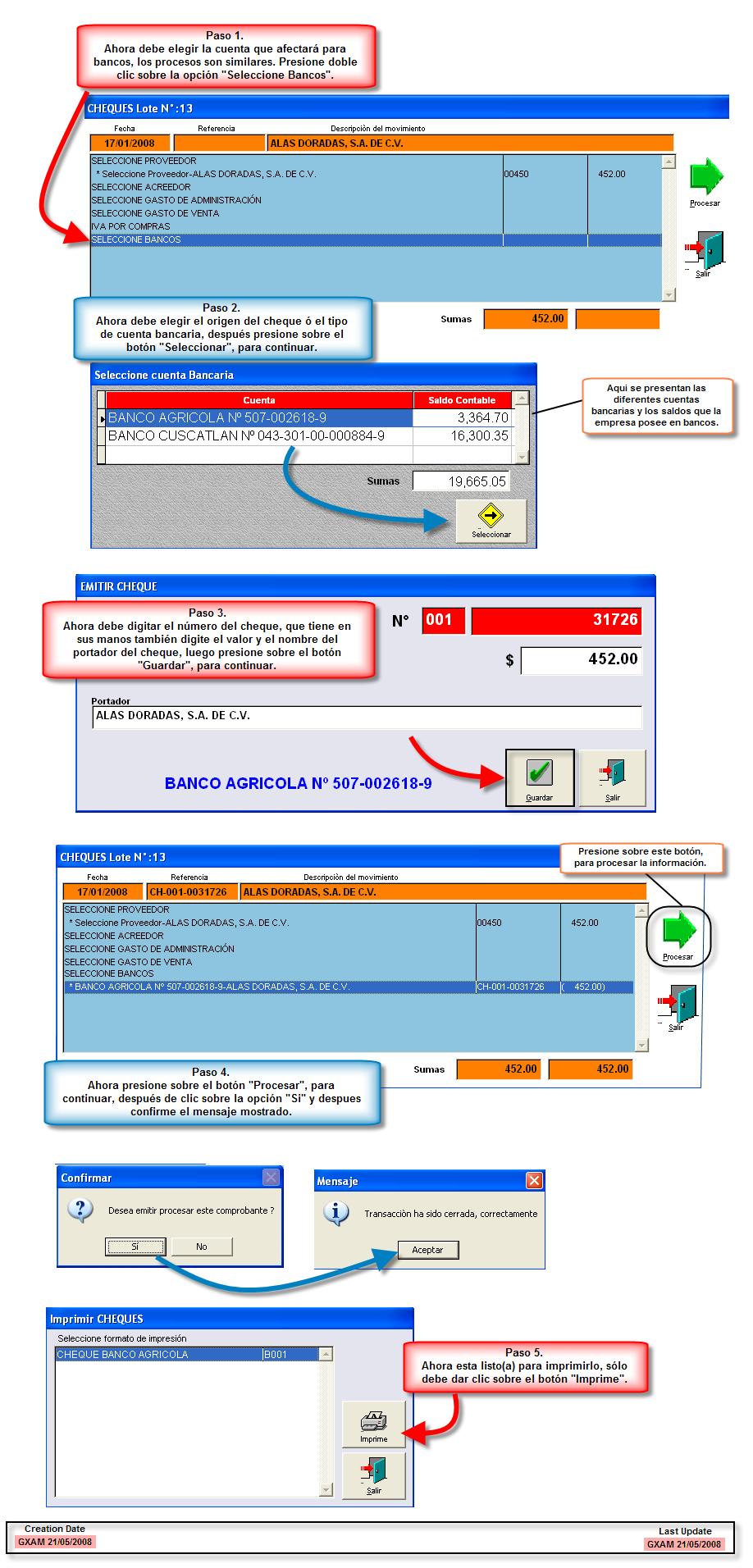 Para su información cada vez que actualiza un cheque genera una partida automática, que por lo general se llama Partida de Bancos.