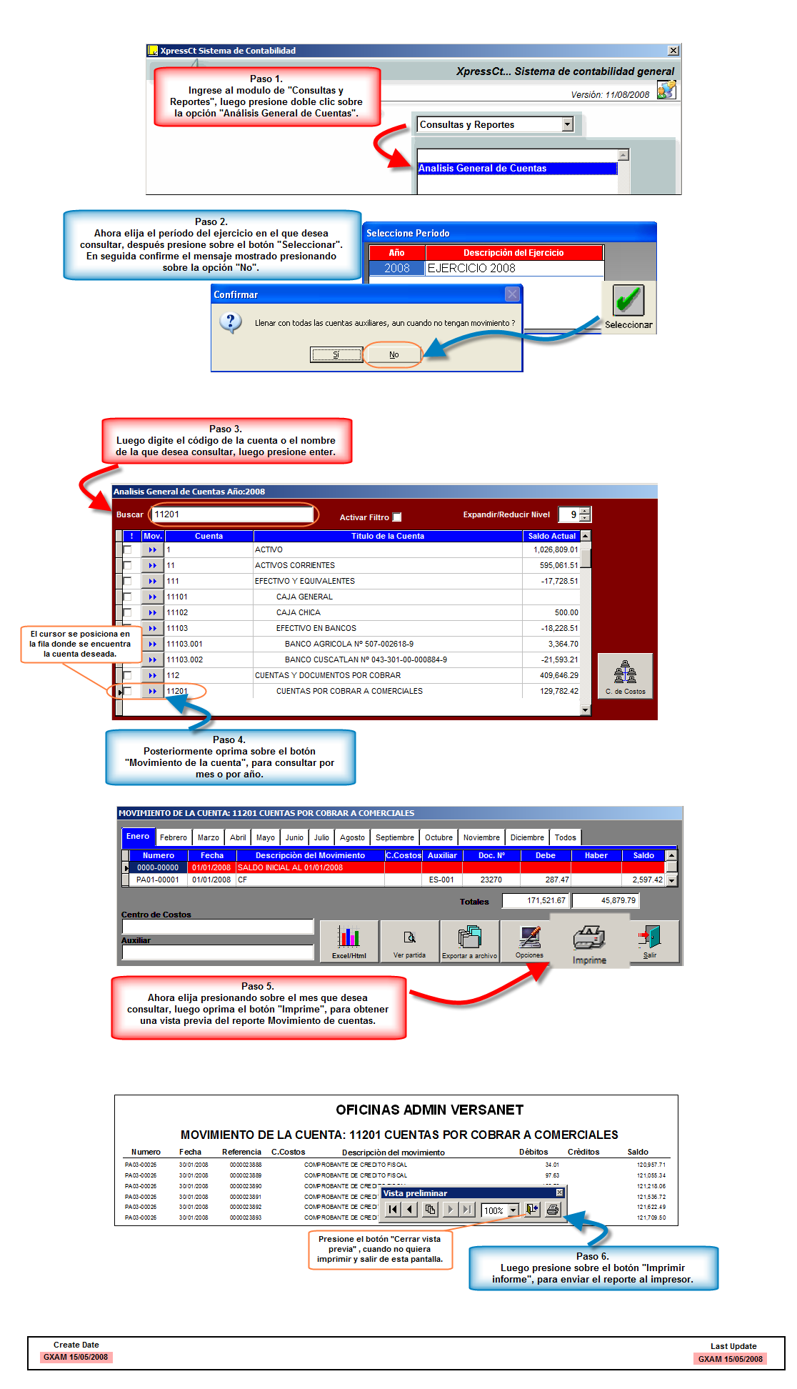 El módulo de Consultas y reportes es muy amplio, en el radican todos los reportes financieros, informes contables entre otros.- Dentro del mismo se contempla la opción "Analisis General de cuentas", especificamente desde MOVIMIENTO DE LA CUENTA, permitiéndole así analizar las transacciones y obtener un historial de cada cuenta por cada uno de los meses del año o general.