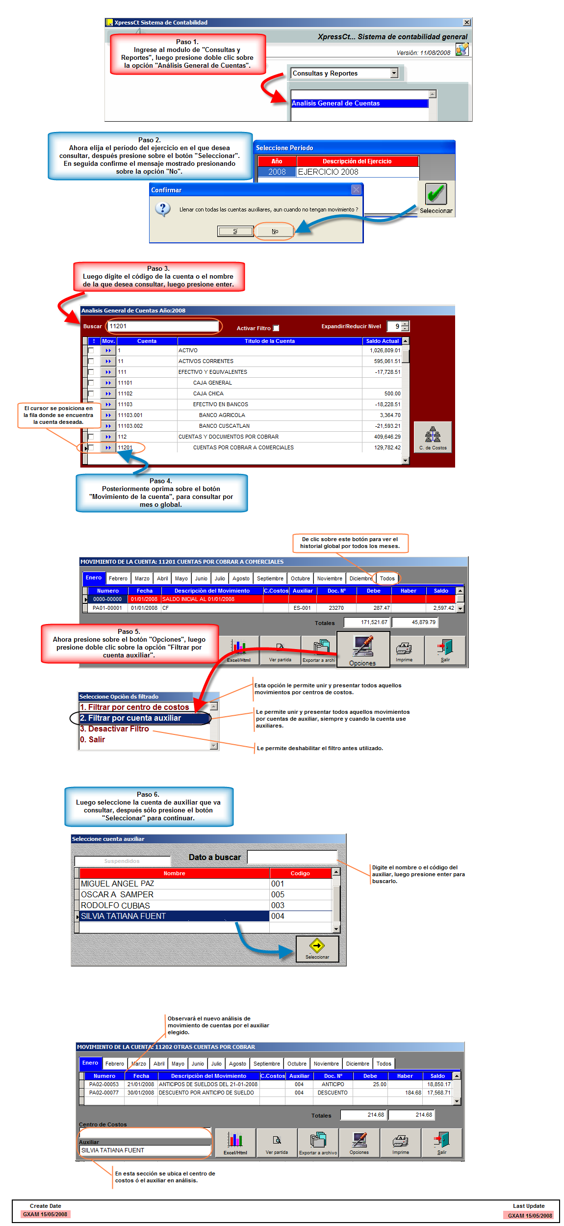 Lo que hace es actuar en forma de filtro para mostrar los movimientos sólo de un determinado auxiliar en este caso de un sólo cliente de manera que podamos ver un historial completo.