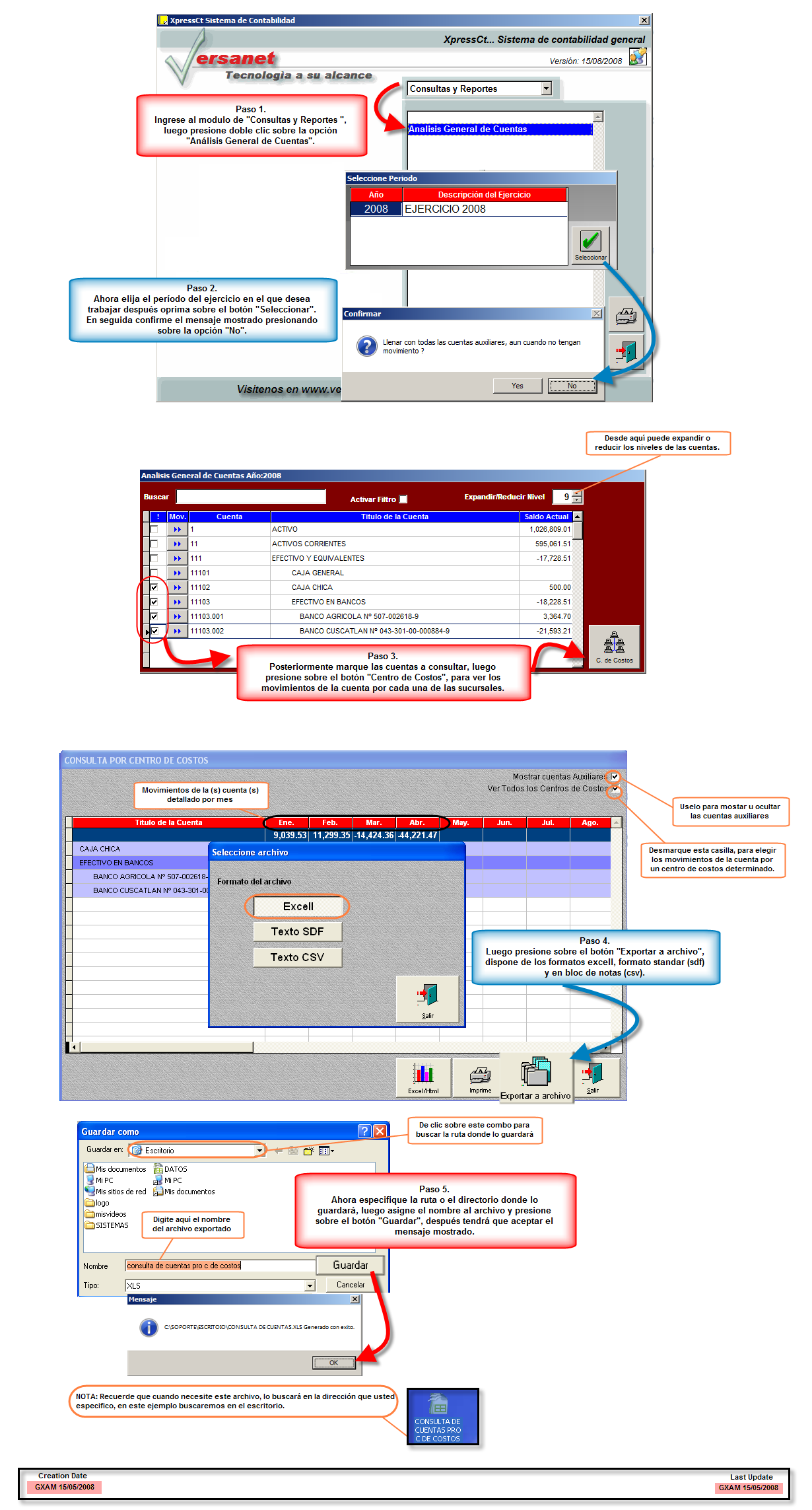 La opción Centros de Costos, muestra los movimientos de cada una de las sucursales detallado por mes para determinada cuenta.