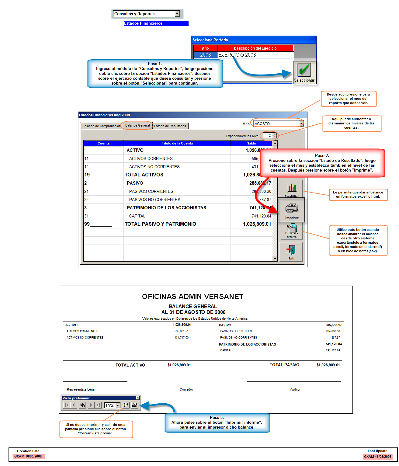 Este estado financiero es conocido como "Balance de Situación" el cual incluye los Libros Mayores, Estado de situación patrimonial (activos, pasivos, patrimonio neto), Estado de resultados (pérdidas y ganancias) y Estado de flujos de efectivo por eso se dice que es una colección de informes.