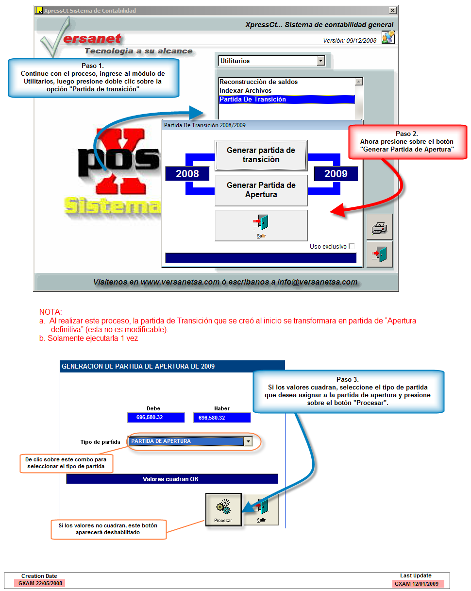 Una vez actualizada la partida de liquidación de gastos e ingresos podrá acccesar nuevamente al módulo de Utilitarios opción Generar Partida de Apertura. Este sería el paso definitivo para la partida de apertura con la que iniciará el nuevo año en este caso 2009.