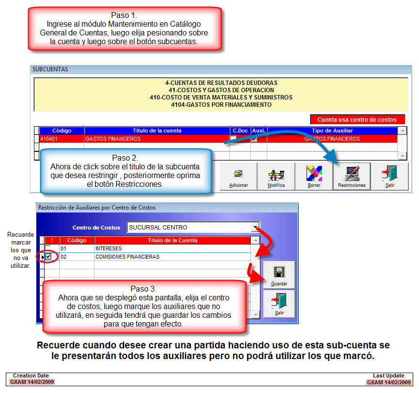 Solo se puede restringir todas aquellas sub-cuentas que utilicen un centro de costo determinado. Por ejemplo algunas de estas solo requieren de ciertos auxiliares y no de todos los crados, porque posiblemente existan otras subcuentas que si los utilicen.