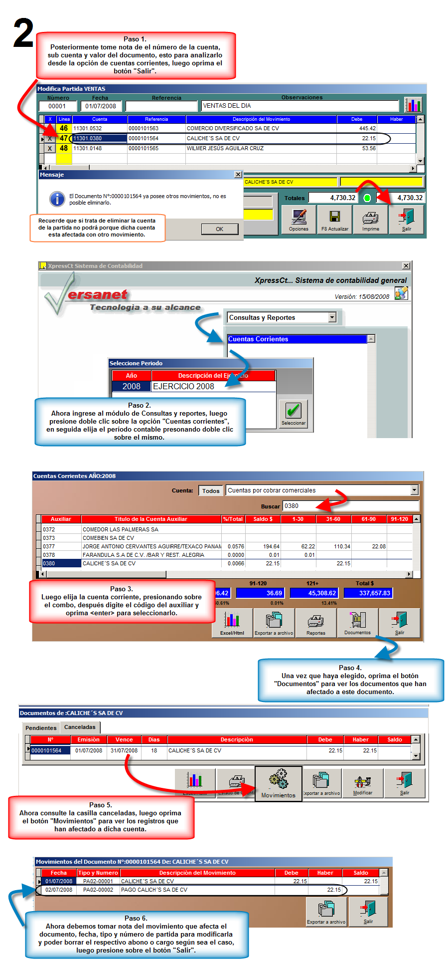 El segundo paso consiste en revisar los movimientos y los documentos que han afectado la cuenta que deseamos borrar, veamos lo siguiente: